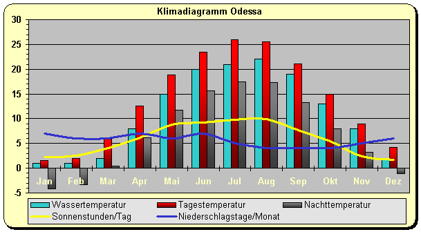 Hier finden Sie weitere ausführliche Hinweise zum Klima, Wetter und der besten Reisezeit in der Ukraine, sowie spezielle Tipps zum Klima (mit Temperaturen und Klimatabelle) und der besten Reisezeit in den Karpaten und am Schwarzen Meer.