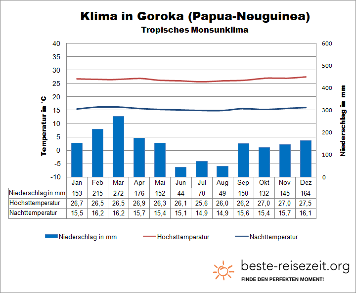 Quelle für die Klimadaten Papua-Neuguineas: World Meteorological Organization (WMO).